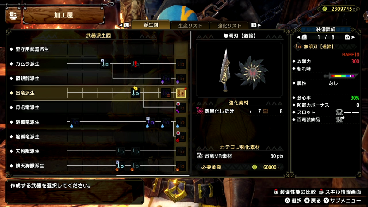 って事でマガイマガドを2狩ほど行って、傀異化した牙がそろったので強化しました。